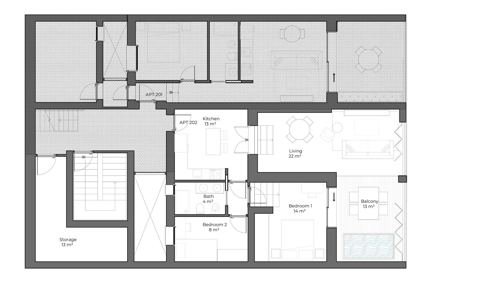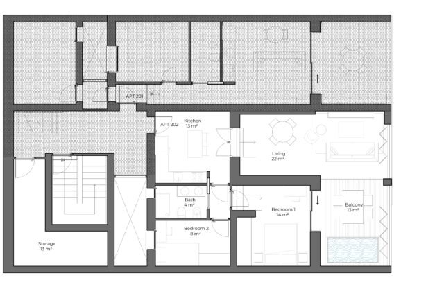 With a daily rental rate of €230 and an estimated occupancy of 144 days per year, Apartment 202 delivers a robust ROI of 13.25%. Its spacious layout and family-friendly design make it highly desirable for vacation rentals.