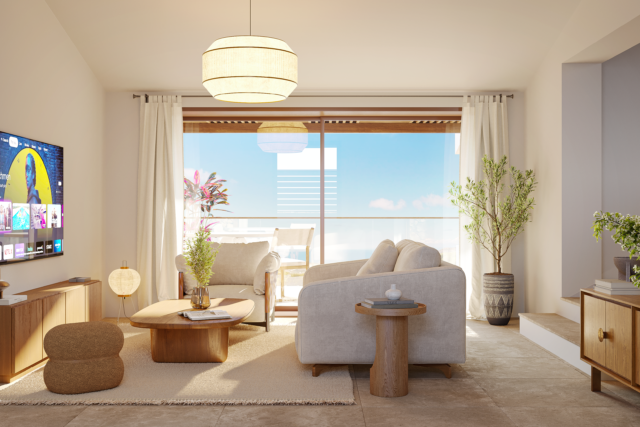 Step onto the apartment’s private balcony to take in sweeping views of the Sardinian coast. With ample room for outdoor dining or lounging, this space is ideal for enjoying Sardinia’s warm evenings and gentle breezes.